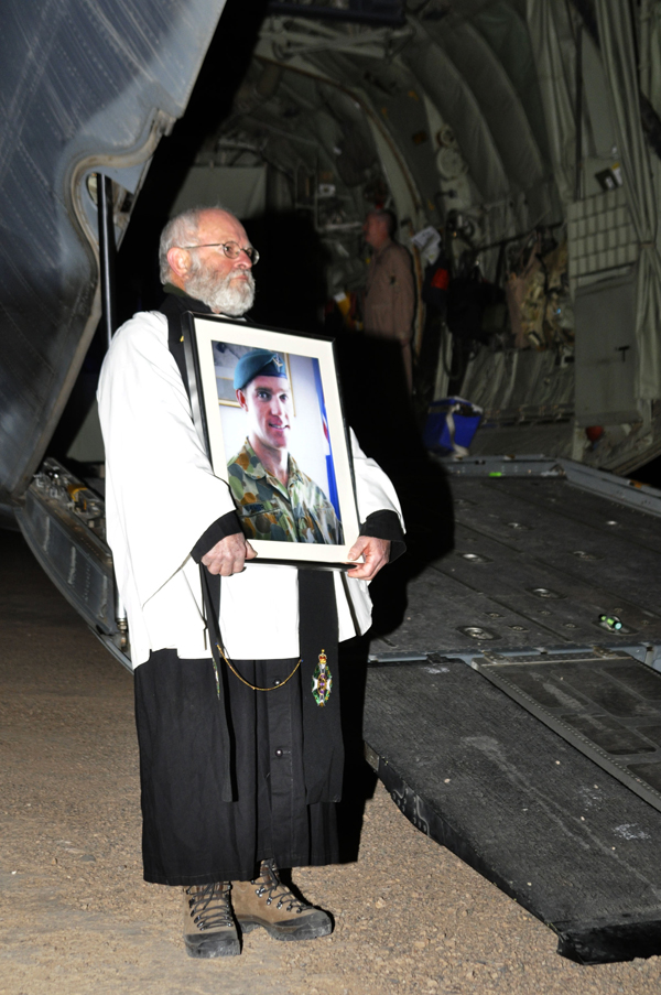 In a solemn ceremony attended by the Chief of the Defence Force, Air Chief Marshal (ACM) Angus Houston, and the Minister for Defence Science and Personnel, Warren Snowdon MP, the body of Private (PTE) Greg Sher was farewelled from the Middle East by Australian troops.
