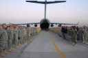 - The bearer party climb the ramp of the C-17 carrying their fallen comrade bound for Australia.