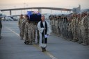 - The padre leads the bearer party towards the C-17 for the final flight home for Private Gregory Sher.